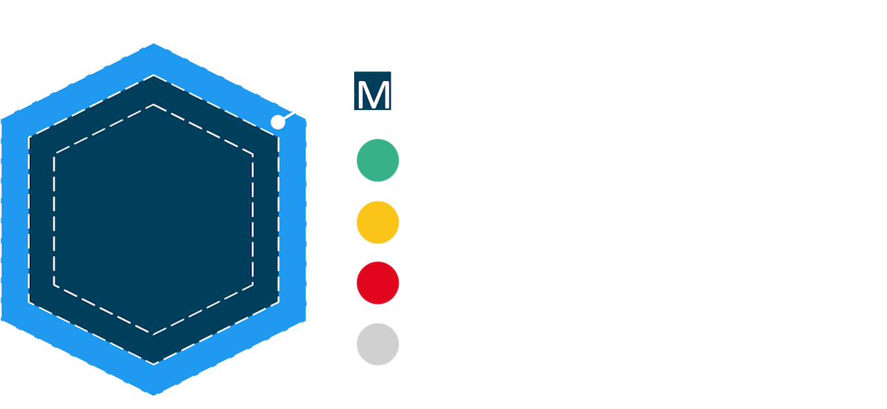 For each system listed, the infographic displays a colour-coded system (red, amber green) using a series of 3 hexagons (inner, middle, outer). These depict measures across 3x areas as captured within the Improvement Schedule questionnaire.